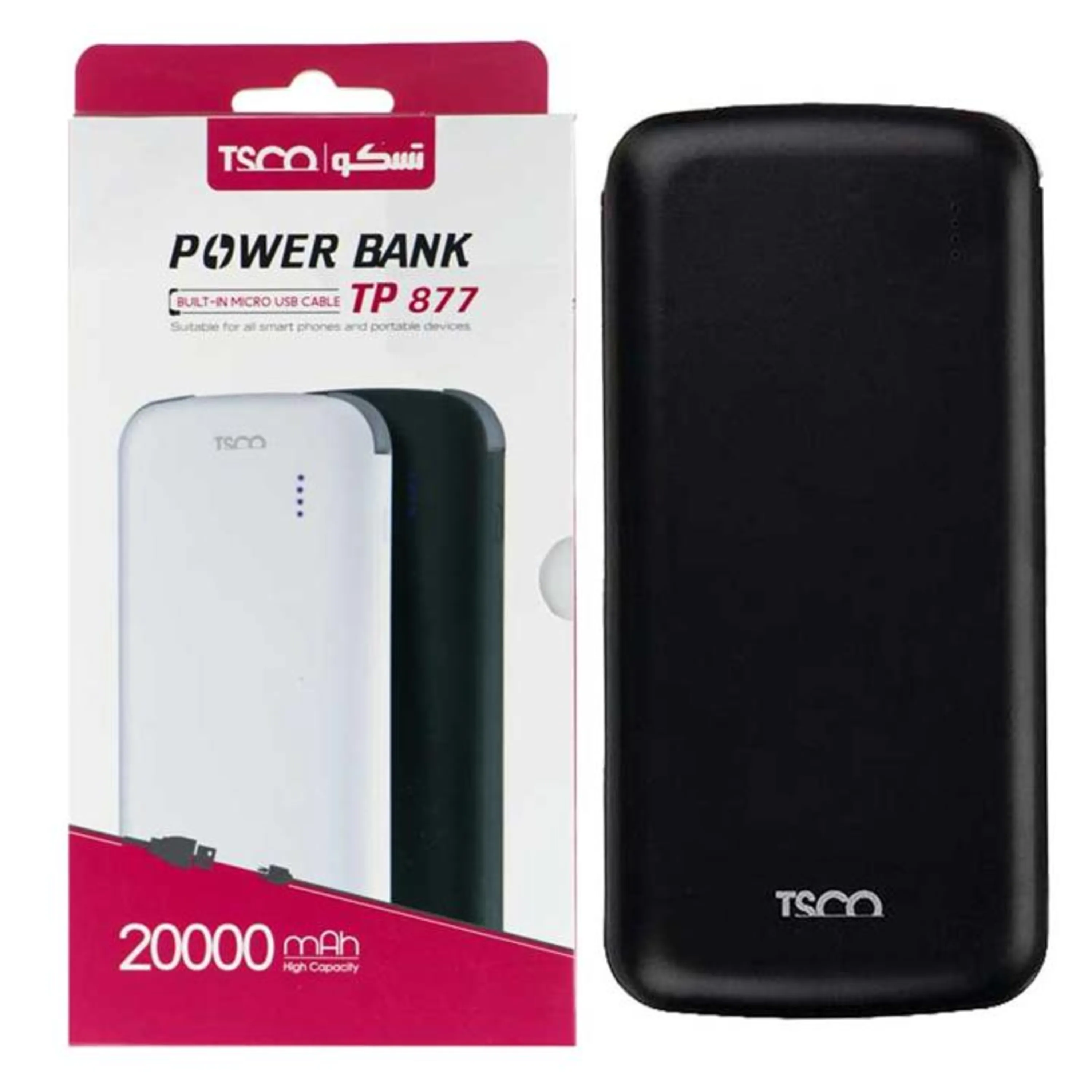 پاوربانک «TP 877» با باطری لیتیوم پلیمری از نسل جدید وظرفیت 20000mAh یک مدل زیبا و با طراحی منحصربهفرد از برند تسکو است. این محصول با توجه به نوع طراحی و قدرت شارژ بالایی که دارد میتواند پاسخ گوی نیاز تمامی افراد باشد.