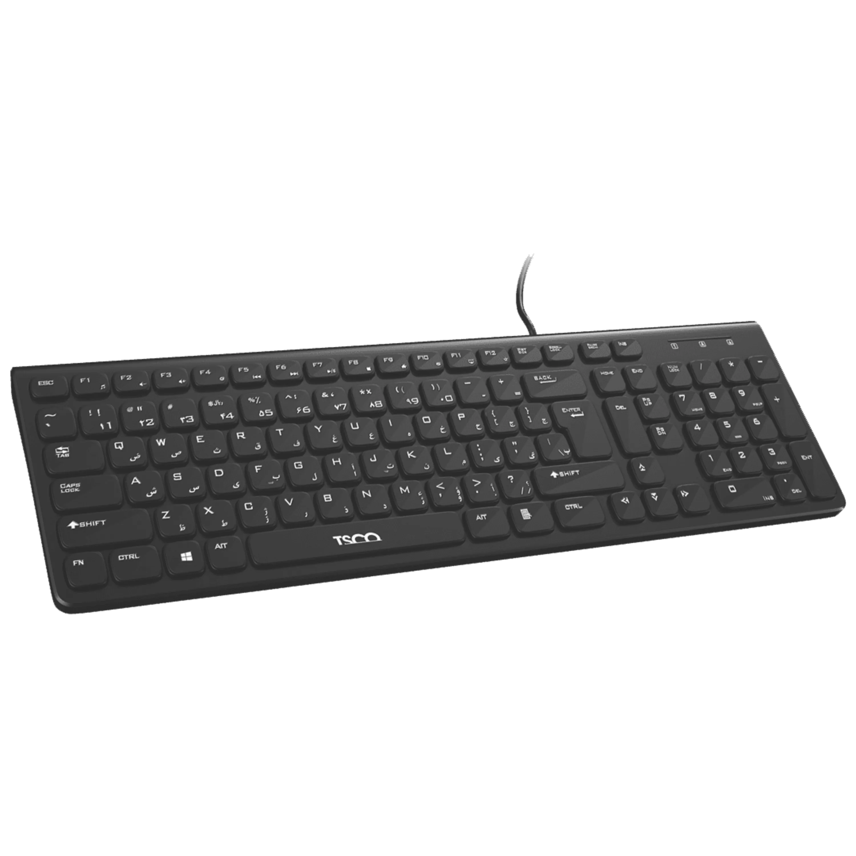 کیبوردTK 8038 از نوع باسیم بوده و با سیمی به طول 1.8 متر برای استفاده با کیس عالی عمل میکند. جنس کابل ازPVC بوده و مقاومت و استحکام خوبی دارد. بلندی سیم این کیبورد سبب میشود بتوانید از فاصله دورتر نسبت به سیستم به راحتی کار کرده و لذت ببرید. این کیبورد مجهز به 104 کلید بوده و 12 عدد کلید مالتی مدیا برای آن طراحی شده است. کلیدهای مالتی مدیا در این کیبورد کار را بسیار راحتتر میکنند. برای استفاده از این کلیدها کافیست همزمان با آنها کلید Fn را بفشارید. همچنین LED مخصوص Num lock و Caps Lock نیز روی آن به چشم میخورد. ضربهپذیری TK 8038 به 10 میلیون بار میرسد که عدد خوبی به حساب میآید. معمولاً افرادی که نویسنده هستند یا نوشتن را زیاد انجام میدهند داشتن یک کیبورد جزیرهای برایشان جذابیت زیادی دارد. کیبورد TK 8038 از نوع ممبران و جزیرهای بوده و کار کردن را برایتان راحت میکند.