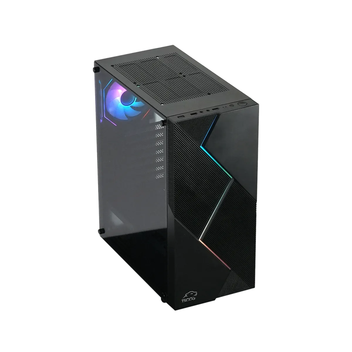 پنل I/O شامل یک پورت USB 3.0، یک پورت USB 2.0، و جک صدا است که اتصال لوازم جانبی را آسان میکند. دکمه تغییر نور RGB، نوار جلویی و فن ARGB را کنترل میکند، مانند کنسولی برای نورپردازی که بدون نرمافزار، حال و هوای کیس را عوض میکند. نور ARGB، مثل افکتی نوری، جذابیت گیمینگ کیس را بالا میبرد.